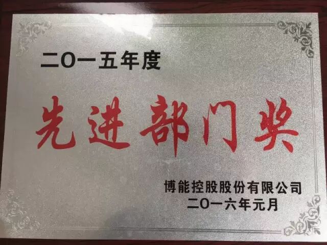 荣获博能控股2015年度先进部门奖